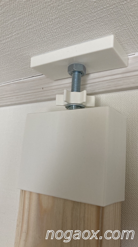 立て掛けたあと、上部のジャッキ式の部分を回して固定。