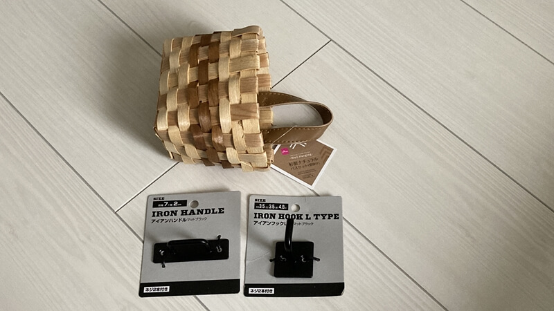 ここで鍵の取り付け……と思ったのですが、ついでにネックレスも掛けようと最寄りのセリアに行ってアイアンフックを追加で購入。
