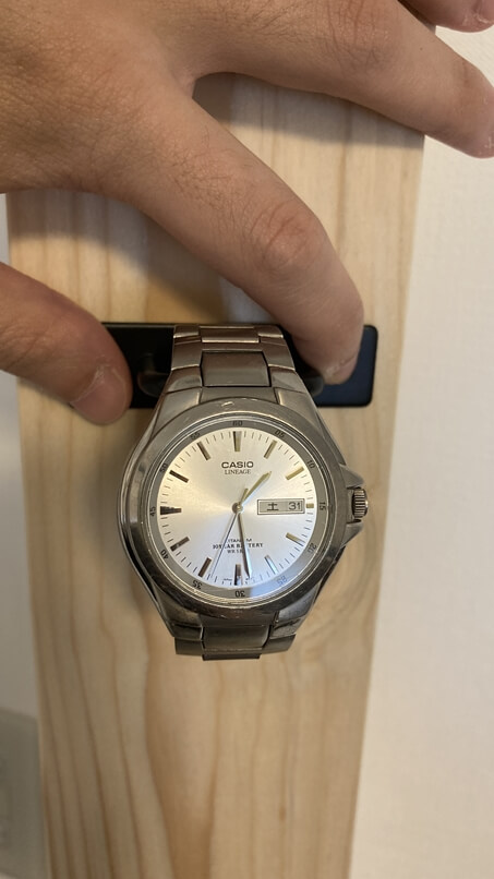 このように、上下に2つ。ちょっと左右に寄った感じにしました。時計はプライベート用と仕事用。