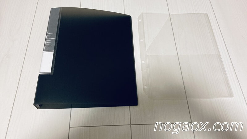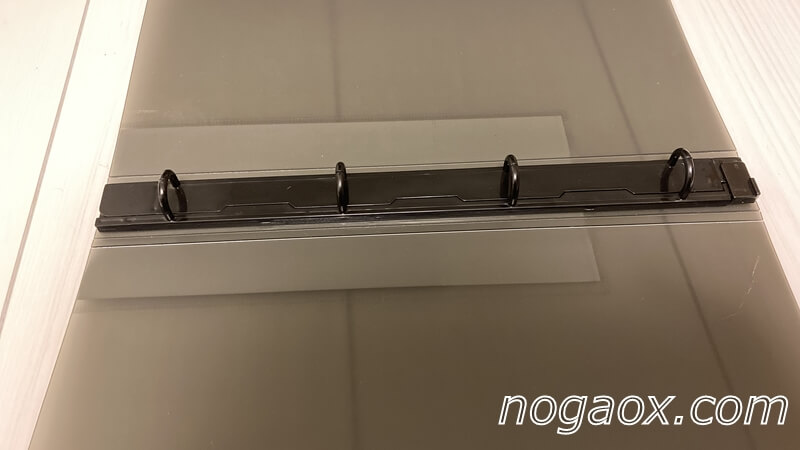 まずはファイル。私が選んだものは4リングタイプの黒。わかりにくいですが、若干透けているタイプです。